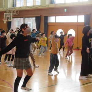 中休みには、いつも全校で取り組んでいる大縄跳びの取組を見学してもらいました。児童の司会で各学年のチームが一体となって目標回数をめざす様子に、「小学校に入学したら、こんなことができるようになるんだ」と子どもたちは目を見張っていました。