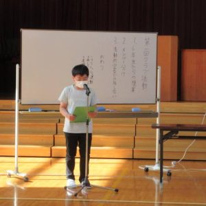 その後、児童・保護者全員が体育館に集合したところで、文部科学省より「ユネスコスクール・キャンディデート」に承認されたことのお知らせを学校長よりお伝えしました。今までの本校の取組を継続しながら、今後も、益々、探究的な学習活動や学校外との交流を深めていく予定です。
