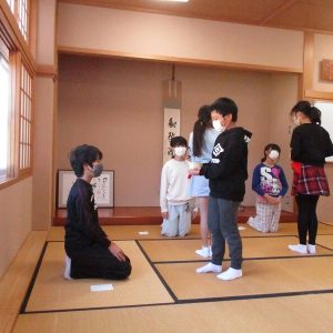子ども達は、お客様に深々とお辞儀をし、ていねいにおもてなしをすることができ、達成感を感じたようです。おもてなしをすることで、心が通い、多くの方に喜んでいただけることの心地よさも感じることができたようで、終わった後の清々しい笑顔が印象的でした。