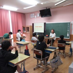 本日の6校時、長浜市税務署と長浜市納税協会の方に来ていただいて、租税教室をしていただきました。税金の役割や税金が使われているサービスや建物などについて学習しました。とてもわかりやすく教えていただきました。授業の最後に1億円の札束の入ったジュラルミンケースを持たせていただき、その重さを実感しました。丁寧に教えていただきましてありがとうございました。