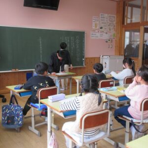 本校では毎日、朝の会に1分間、「立腰タイム」を行っています。椅子に深く座り、背筋を伸ばして、1分間黙想しながら、呼吸と気持ちを落ち着かせます。立腰タイムの効果には、姿勢を整えることや深く呼吸を行うことで酸素を体中に取り込み、集中力を高めることがあります。1年間、毎日継続していきます。