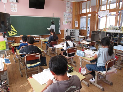 運動会も無事に終わり、みんな、ほっとしているところです。子どもたちは授業に前向きに熱心に取り組んでいます。本当にありがたいことです。今日は、1校時の授業風景を紹介します。この時間は、それぞれ学年ごとの学習でした。