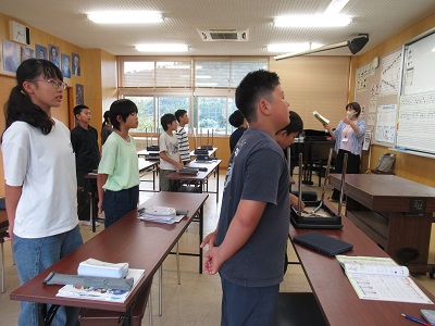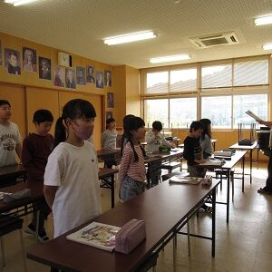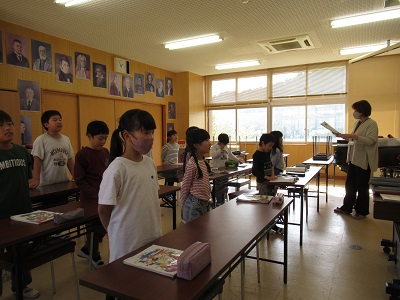 今年度、3・4年と5・6年の音楽は、社会人講師の池田先生に来ていただいています。池田先生は声楽がご専門で、中学校や小学校で教鞭をとられています。専門性を生かしたわかりやすいご指導で子どもたちはとても楽しく音楽の授業に取り組んでいます。本当にありがとうございます。週2時間の音楽の授業ですが、これからますます音楽を好きになって合唱や演奏に力いっぱい頑張ってほしいと思います。