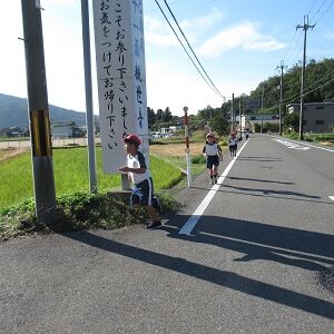 保護者の皆様、地域の皆様、温かいご声援ありがとうございました。また、安全確保のため立哨に協力いただきました警察の方、まちづくり協議会の皆様に感謝申しあげます。ありがとうございました。