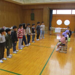 この日、本校児童は地域で開催されている紅葉まつりに参加し、総合的な学習で学んだことを発表しました。1・2・3年生は高時マイベースの歌やダンスを発表しました。3・4年生は「大谷川の自然を守る」ことをテーマとした劇を行いました。5・6年生は「こだかみ茶の歴史と高時に縁のある石田三成」について発表しました。どの学年も堂々と自信をもって発表することができました。そのあと、鶏足寺の見学をして、地域の方が作ってくださったけんちん汁をごちそうになりました。とてもおいしかったです。