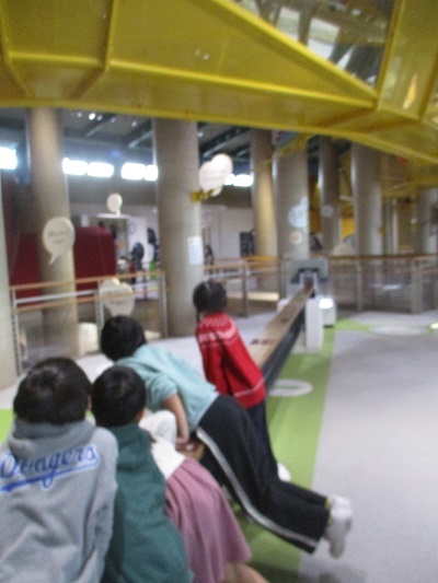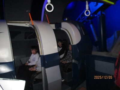 今日は全校校外学習で、エンゼルランド福井に行ってきました。福井市はみぞれ混じりの天候でしたが、室内での活動でしたので特に問題はありませんでした。エンゼルランドでは、まず初めにプラネタリウムで、「ジャックと豆の木」を鑑賞しました。その後は、縦割り班で、展示エリアや月面宇宙基地、毛利ラボ、プレイザウルスを見学しました。とくに、月面宇宙基地ではスペースシップに乗り、宇宙旅行を体験できたのは印象に残ったようでした。その後、縦割り班でお弁当を食べ、午後はまだ行けていない体験エリアへ行って楽しみました。子どもたちは縦割り班で協力しながら、いろいろな体験活動や見学を行うことができました。とてもよい校外学習になりました。