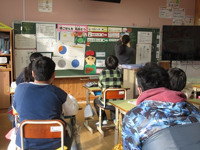 本日の1校時に、長浜北部給食センターの栄養教諭の山本先生が来てくださり、5年生に給食指導をしてくださいました。今回は「朝ごはんの大切さ」「理想の朝ごはん」「三大栄養素」について詳しくお話をしてくださいました。子どもたちは毎日の朝ごはんや食事の栄養バランスについて、振り返ることができ、大変良い学習になりました。山本さん、ありがとうございました。