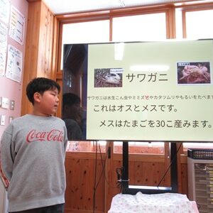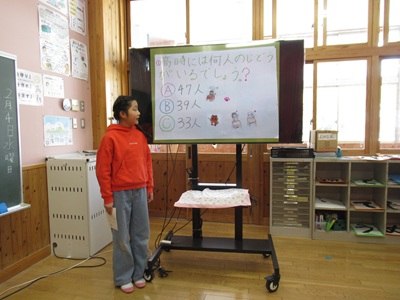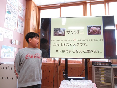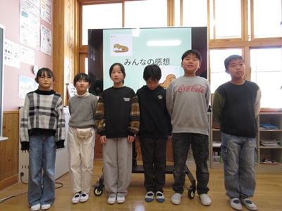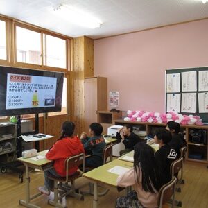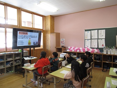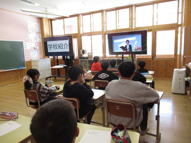 3・4年生は、東広島市の豊栄小学校とZOOMで総合的な学習の取り組みについて交流しました。初めにお互いの学校紹介をクイズ形式で行いました。豊栄小学校のキャラクターの「おとまる」の紹介や由来を教えてくださいました。その次に、総合的な学習での取り組みを発表しました。豊栄小学校はオオサンショウウオを守る活動として、オオサンショウウオのグッズやシール、スタンプラリーの作成、ビデオ制作をされていることがわかりました。私たちがしていない取り組みをされていて、とても驚き、勉強になりました。高時小の3・4年は「大谷川の水質調査」や「大谷川の水生生物」「大谷川を守る活動」について発表しました。この授業を終えて、子どもたちは「わくわくして楽しかった」「豊栄小の活動を知ることができてすごく参考なった」などの感想がありました。豊栄小学校の3・4年の皆さん、先生方、本当にありがとうございました。