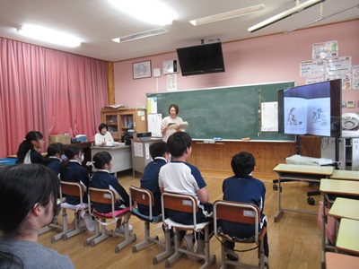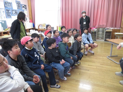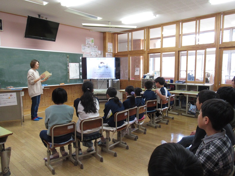 本日、地域のボランティアの山内さんと学校司書の山口さんに読み聞かせをしていただきました。今年度最後の読み聞かせです。1・2・3年は読み聞かせのあと、クイズをしていただきました。子どもたちはお話の中に出てきた動物をよく覚えて答えていました。4・5・6年生は、6年生が1年生の時に読み聞かせで聞いた絵本と卒業にちなんだ絵本を聞きました。子どもたちはなつかしそうに聞いていました。読み聞かせのボランティアの皆様には1年間大変お世話になりました。ありがとうございました。