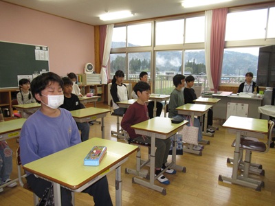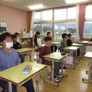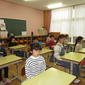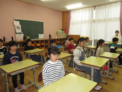 本校では昨年に引き続き、朝の会に1分間、「立腰タイム」を行っています。椅子にきちんと座り、背筋を伸ばして、1分間、目を閉じて、呼吸と気持ちを整えます。立腰タイムの効果には、姿勢をよくすることやきちんと呼吸を行うことで、酸素を体中に取り込み、集中力を高めることがあります。1年間、毎日継続していきます。
