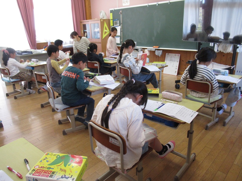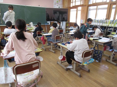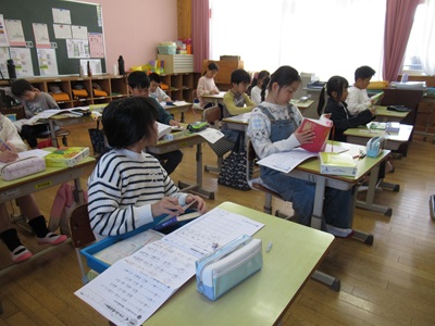 朝の会後に、毎日20分間、「己高タイム」に取り組んでいます。己高タイムではおもに算数と漢字の学習に取り組んでいます。算数では100マス計算やひっ算など計算を、漢字では新出漢字や漢字テストなどを中心に行っています。ほかにもタブレットを使ってAIドリルに取り組んだりしています。子どもたちは熱心に学習に取り組んでいます。継続は力なり。1年間、続けて取り組んでまいります。
