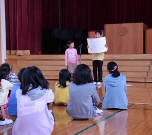 今回は、児童会の各委員会からの連絡が中心で、みんな大きな声で発表し、