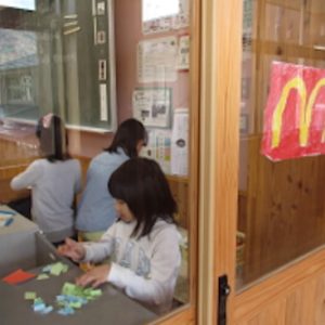 2年生が育てていた白菜が、立派に成長して食べ頃に♪待ちに待った収穫です。とれたての新鮮な白菜を使って、みんなでお鍋を作りました。今日は、強力な助っ人の秋山先生と一緒に料理をします。みんなうきうき!
