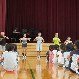 一粒の大豆から70粒以上の大豆が収穫できるとのことで、収穫が楽しみです。また、作業の後には、今日植えた大豆がどのように生長するのか、また、収穫後の大豆からどのような食品ができるか等について教えていただきました。