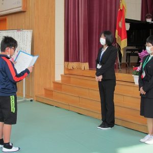 本日本校で、「ESDティーチャー認定証授与式」が、奈良教育大学 加藤久雄学長様・高橋豪仁副学長様・中澤静男准教授様のご臨席のもと開催されました。