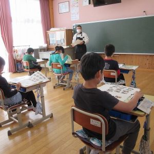 10月29日(木)には、歴史遺産課の古山主査様に来校していただき、出前授業をしていただきました。私たちが修学旅行で訪れた飛鳥地方の古墳や、教科書に載っている大仙古墳、そして古橋にある中尾古墳群について詳しく教えていただきました。さらに、高時小学校の旧校舎跡から出土した土器や道具などについても教えていただきました。